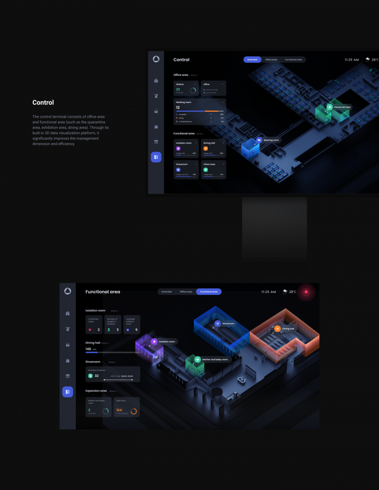 比如,將整個流程通過動效制作成模型展示出來,用戶便能直接清晰明了的找到某個環節的數據;如今的數據可視化不再是一味的圖表堆砌,更多的設計師開始關注3D建模、動效交互等等,將更逼真的場景搬上大屏,給用戶身臨其境的真實感。