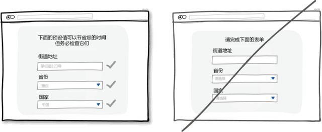 適當的默認值和預先填充好的表單字段可以大量減少用戶的工作量。在節省用戶寶貴的時間上面,這是種非常常見的做法,可以幫助用戶快速填完表單或者注冊信息。