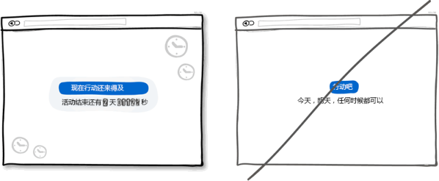 適當的緊迫感是個有效的戰術可以讓用戶立即做出決定而不是等上個十天半個月。重要的是這種戰術屢試不爽,因為它暗示了資源的緊缺或者活動的時間有限,今天可以買,但明天可能就無法這么低價了。另一方面,這一戰術也讓用戶感到會錯失一次大好的機會,再一次,應用了人們害怕失去的本性。當然,這種戰術會被一些人嗤之以鼻,認為是不耿直的做法。不過,這只是種戰術而以,并且在保持合法性的前提下應用也無傷大雅。所以請不要為了營銷而在界面上制造緊迫的假象。