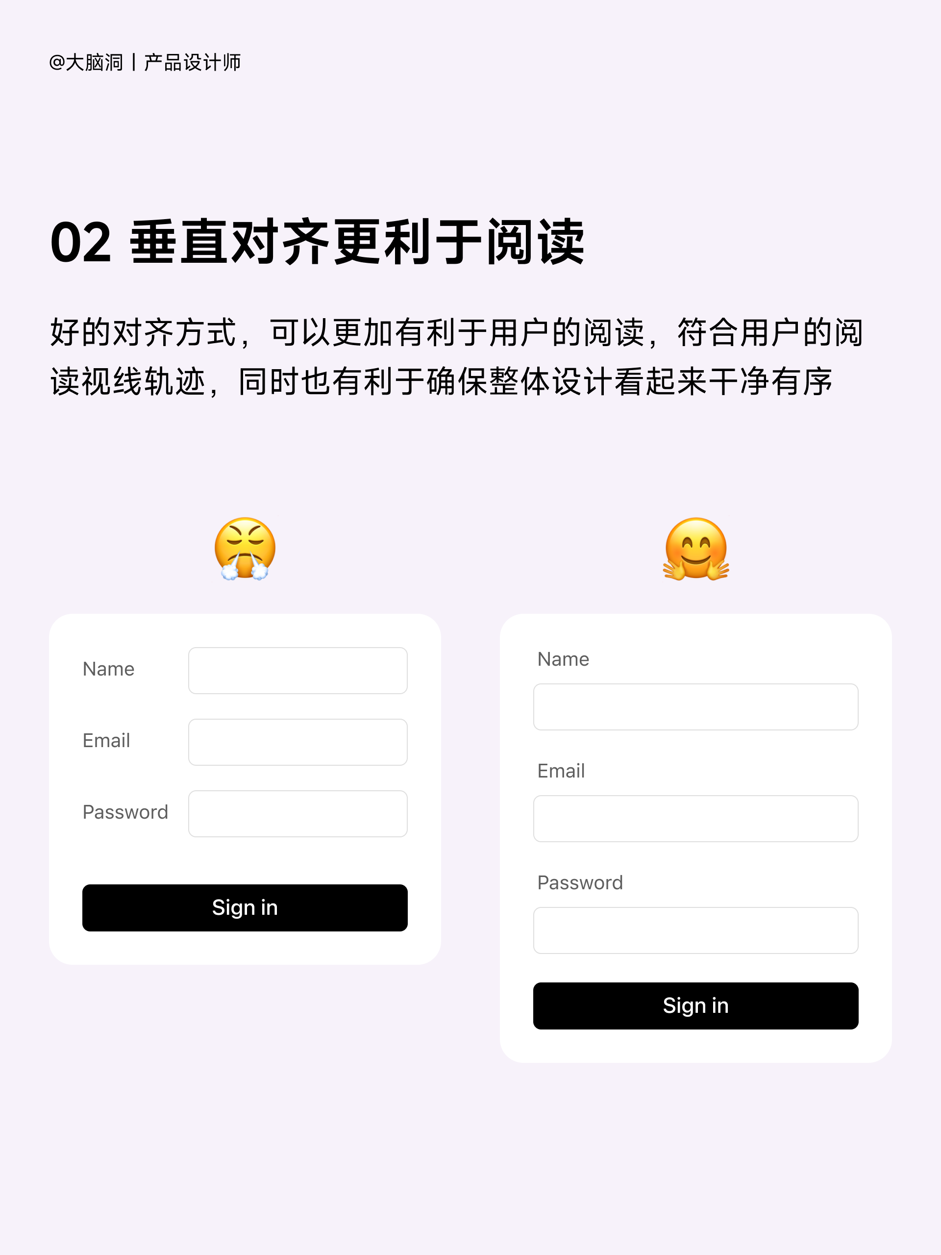 過多邊框會喧賓奪主。不用說,邊框確實在劃分區域進行版塊設置時有很大的作用,但同時其明顯的線條也會吸引走用戶的注意力。為了達到劃分版塊又不轉移用戶注意力的目的,在排版時可以將界面上不同區域的元素通過空白進行分組,用上不同的背景色,將文字對齊方式進行統一,還有就是為不同區域設置不同的樣式。當使用所見即所得的界面設計工具時,我們經常在界面上方便地拖出很多區塊來,這些區塊多了就會顯得雜亂無章。所以我們又會到處放些橫線來分界。一個更好的做法是將區塊垂直對齊,這樣做不會讓那些多余的線條來擾亂視覺。