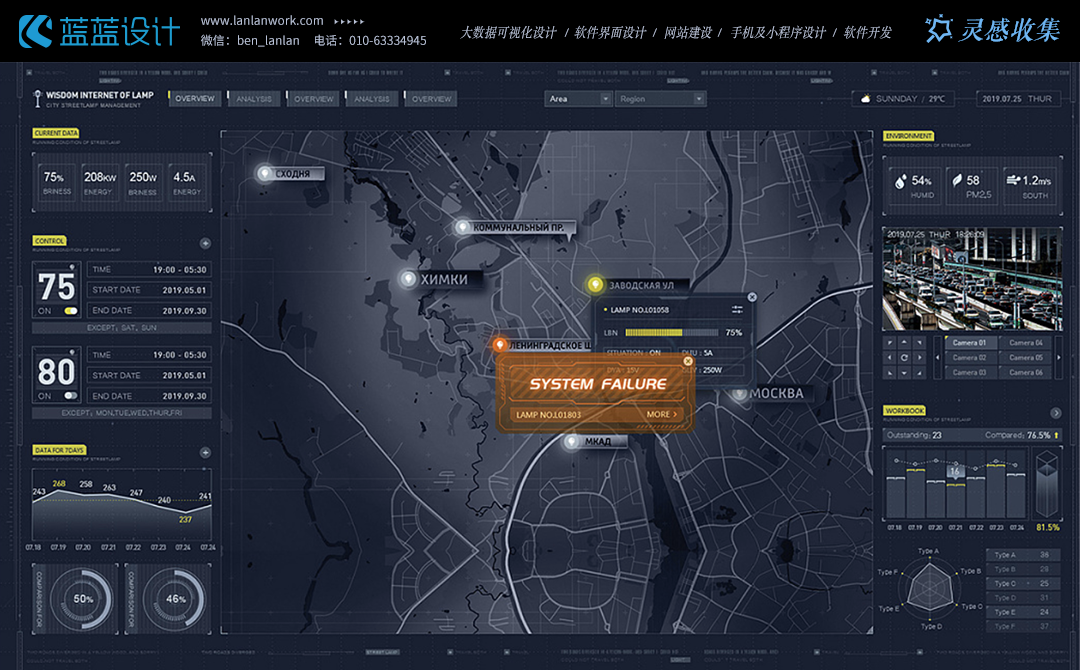 大屏界面設(shè)計(jì)還需考慮實(shí)際使用環(huán)境中的光線條件以及屏幕材質(zhì)對色彩表現(xiàn)的影響。在光線較暗的環(huán)境中,應(yīng)適當(dāng)提高界面色彩的明度和飽和度,以確保信息的清晰可見;而在光線較強(qiáng)的環(huán)境中,則需降低色彩明度,避免反光和眩光現(xiàn)象。此外,不同屏幕材質(zhì)對色彩的表現(xiàn)力也有所不同,設(shè)計(jì)師需根據(jù)具體情況進(jìn)行調(diào)整和優(yōu)化。