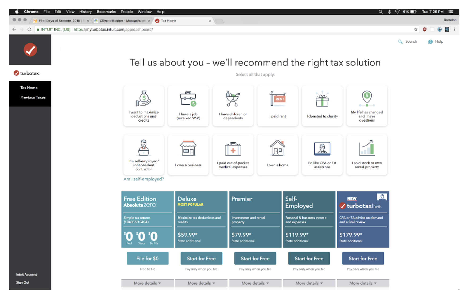 - 更高的辨識性:在網(wǎng)格布局中,圓角卡片的角落可辨別邊緣能引導(dǎo)眼睛識別視覺差異,更易計算卡片總數(shù),而尖角卡片看起來統(tǒng)一,不易吸引注意力,如 TurboTax 儀表板中,頂部使用圓角卡比中間使用尖角卡更引人注目。