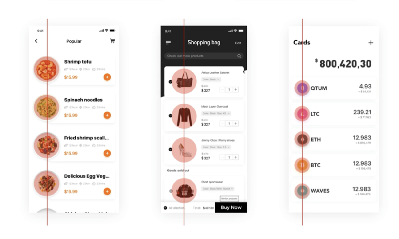 - 連續(xù)性:視覺偏向感知連續(xù)形式,元素共享明確界限區(qū)域則分一組,設計中常用卡片式組合相關元素。