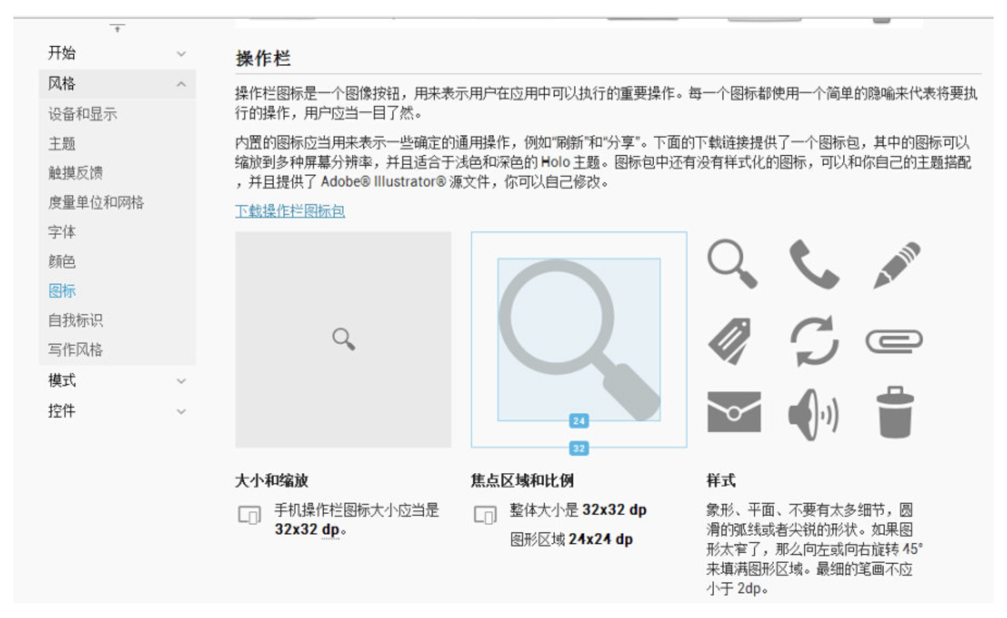 • 啟動圖標在 play 商店需為 512512 像素;操作欄圖標建議圖形區域 2424、圖片大小 32*32;通知欄圖標建議為白色。