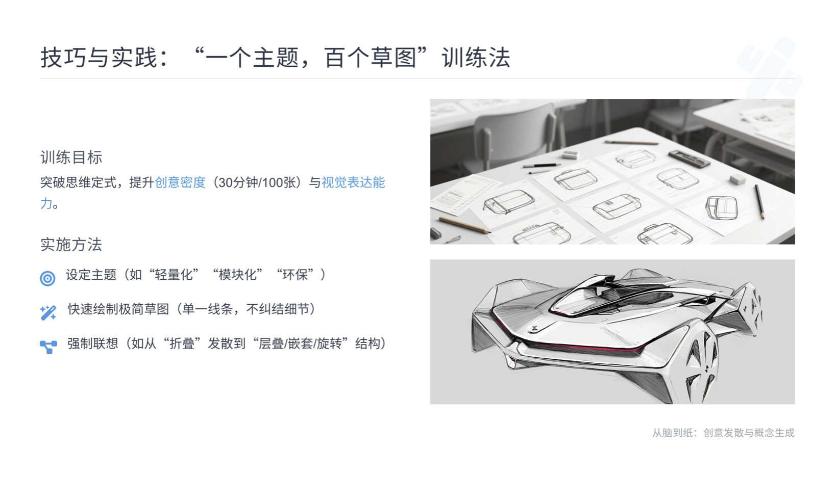 創(chuàng)意生成從來不是被動等待靈感降臨,而是 “先放開、后收攏” 的系統(tǒng)性過程。掌握頭腦風暴、SCAMPER 等創(chuàng)新思維方法,輔以高效的草圖表達技巧,設(shè)計師便能主動激活創(chuàng)意潛能,將抽象想法轉(zhuǎn)化為切實可行的設(shè)計方案。記住,最好的設(shè)計往往藏在第 101 個草圖里,持續(xù)練習與實踐,方能讓創(chuàng)意生成成為一種可復制的能力。