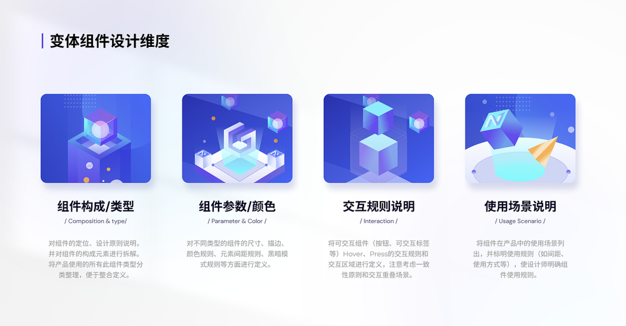 參數規范是變體組件落地的關鍵,需從尺寸、顏色、間距、交互等維度制定明確標準,確保設計一致性與可執行性。