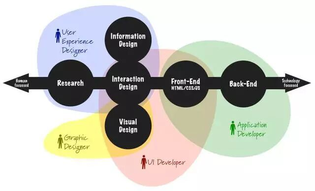 圖五:從工作職責(zé)來(lái)解釋差異, UX的范圍很廣,很少人可以精通全部,可以說(shuō)幾乎沒(méi)有。