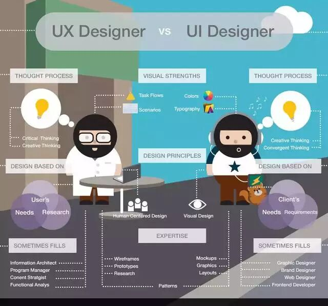 總結(jié):UI設(shè)計(jì)是展現(xiàn)視覺(jué)層面的(界面),而UX是使用過(guò)程中的情感(互動(dòng)與體驗(yàn))。UX設(shè)計(jì)師不僅關(guān)注界面的設(shè)計(jì),更關(guān)心所有會(huì)影響使用者體驗(yàn)的一切。如架構(gòu)、互動(dòng)、內(nèi)容與及使用者對(duì)象、需求、價(jià)值觀。