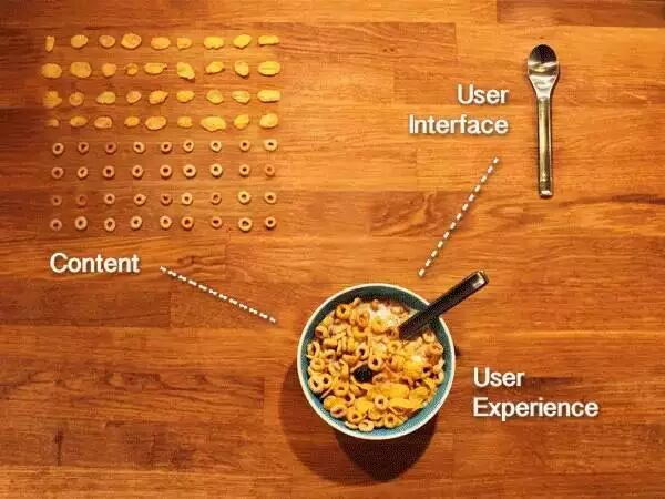 圖十:UI是用來(lái)取內(nèi)容的工具,使用者使用UI吃完?yáng)|西(內(nèi)容)的體驗(yàn)是UX。