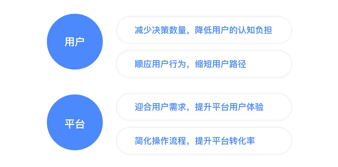 對用戶:預(yù)判設(shè)計幫助用戶減少做決策的數(shù)量,降低用戶的認(rèn)知負(fù)擔(dān),順應(yīng)用戶行為進(jìn)行預(yù)判,減少冗余步驟、縮短用戶路徑,節(jié)省用戶時間,以此來為用戶創(chuàng)造更愉悅輕松的體驗。