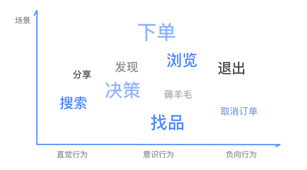 另外還有一類是負(fù)向行為,即用戶在平臺中體驗時可能會由于各種原因產(chǎn)生負(fù)面情緒,比如困惑、不喜歡等情緒,從而會產(chǎn)生負(fù)向行為,包括退出、跳出、關(guān)閉等。對于這類負(fù)向行為,需判斷用戶產(chǎn)生負(fù)向行為的原因,并及時為用戶提供其恰好需要的幫助或提示,引導(dǎo)用戶快速走出消極狀態(tài),對用戶當(dāng)前行為進(jìn)行挽留。