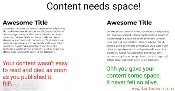 留白對于內容的可讀性非常重要。過于聚集的文本和圖片會讓用戶感到不適,而過多的空白會導致讀者需要過多的滾動,從而在無法快速瀏覽并產生挫折感。