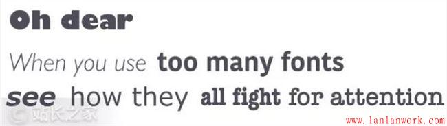 當然,你還可以在設計中使用兩種字體(一種用于標題,一種用于其他文本,比如段落,標題等等)。我們很少在設計中看到兩種以上的字體,但出現這種情況時,是有一定原因的。