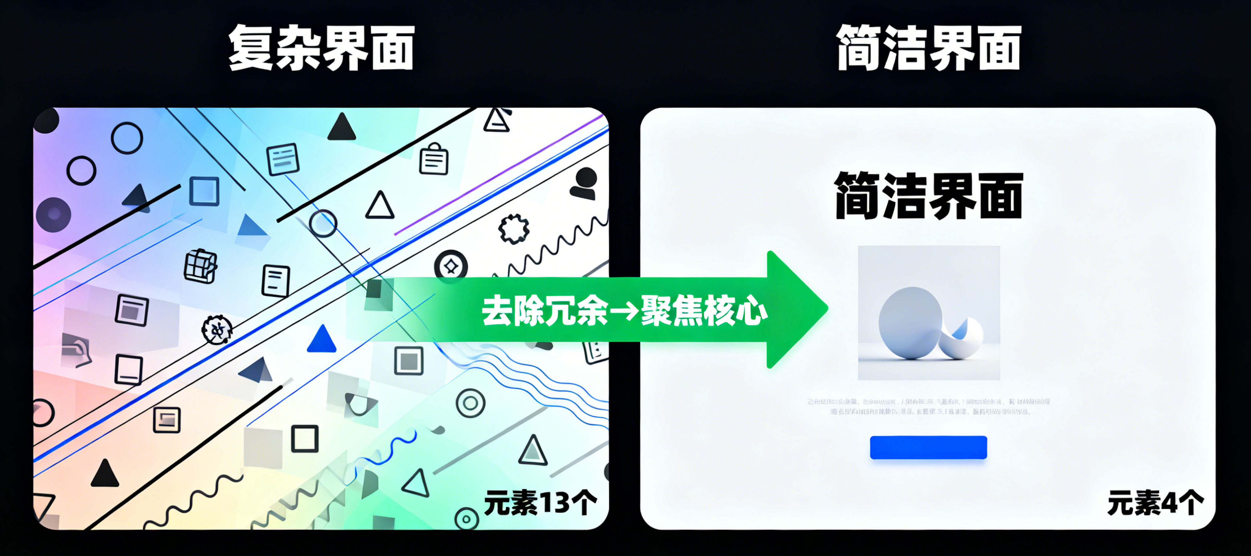 過度裝飾會分散用戶注意力,還會增加加載時間。新手需學會 “做減法”,去除不必要的特效與元素,用直白的語言與簡潔的界面傳遞核心價值。?