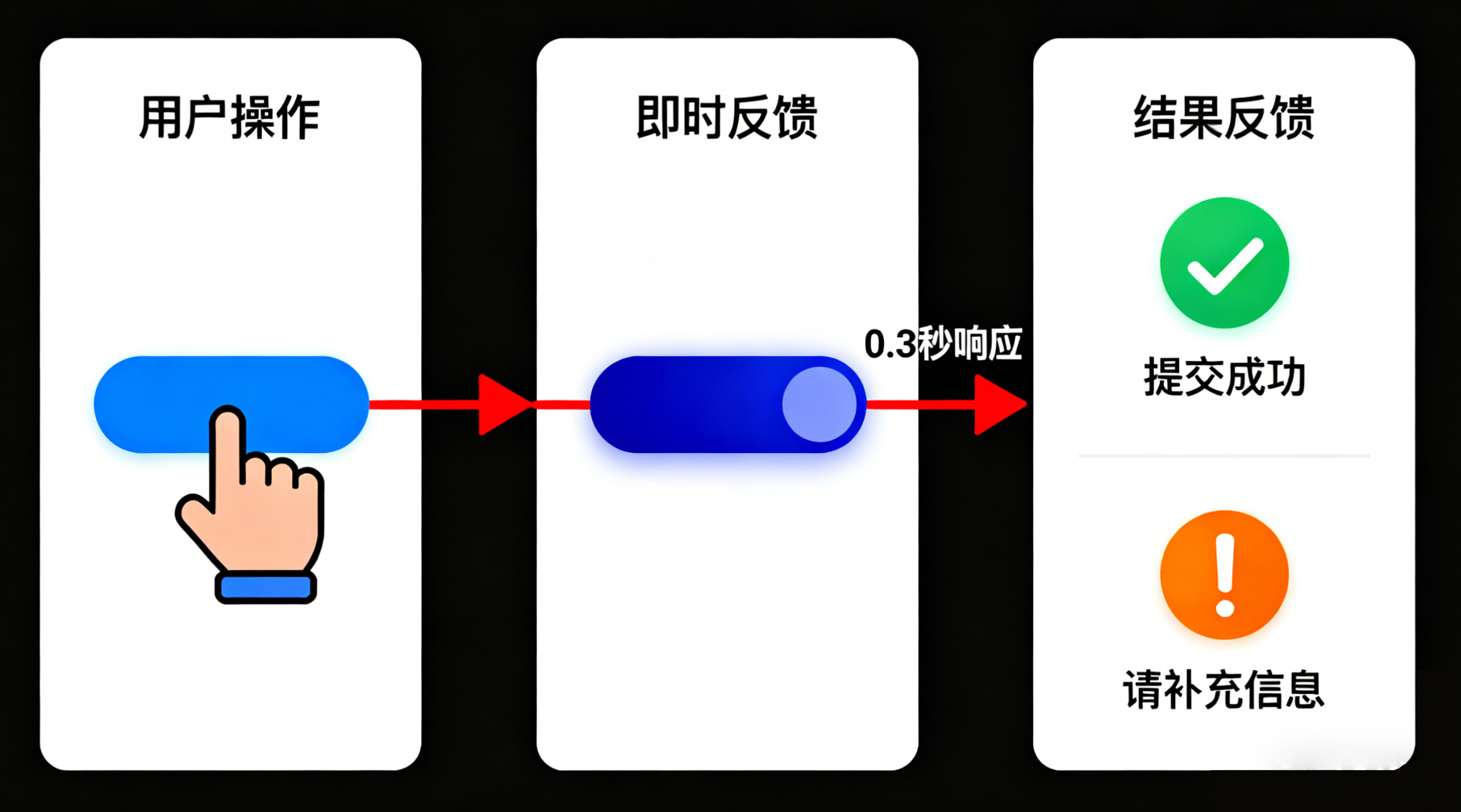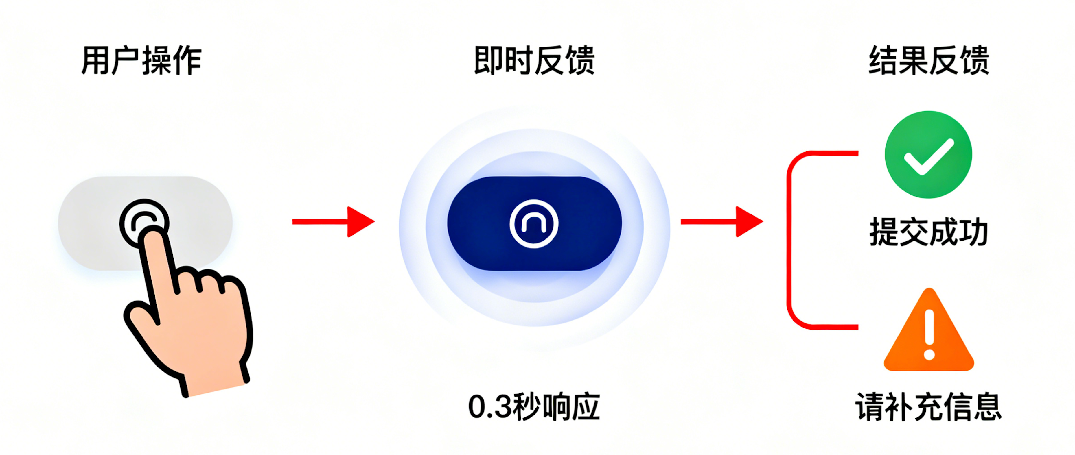 用戶點擊按鈕、加載內容時,界面需給出明確反饋(如按鈕變色、加載進度條),避免用戶困惑 “操作是否生效”。?