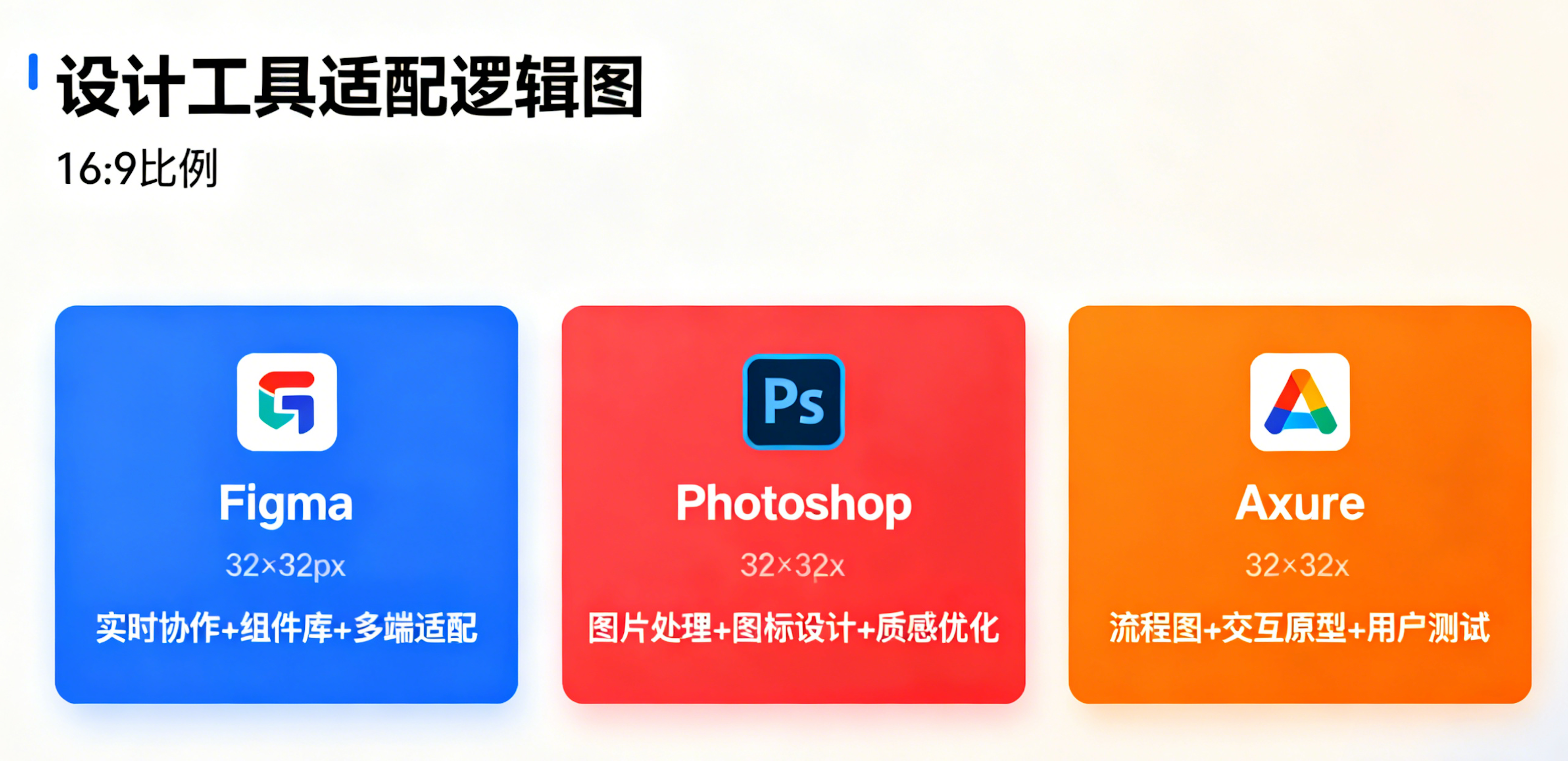 新手易沉迷軟件操作,卻忽視設計邏輯。核心工具無需貪多:Figma 用于協作設計,PS 處理圖片,Axure 畫流程圖,重點是用工具實現設計思想。?